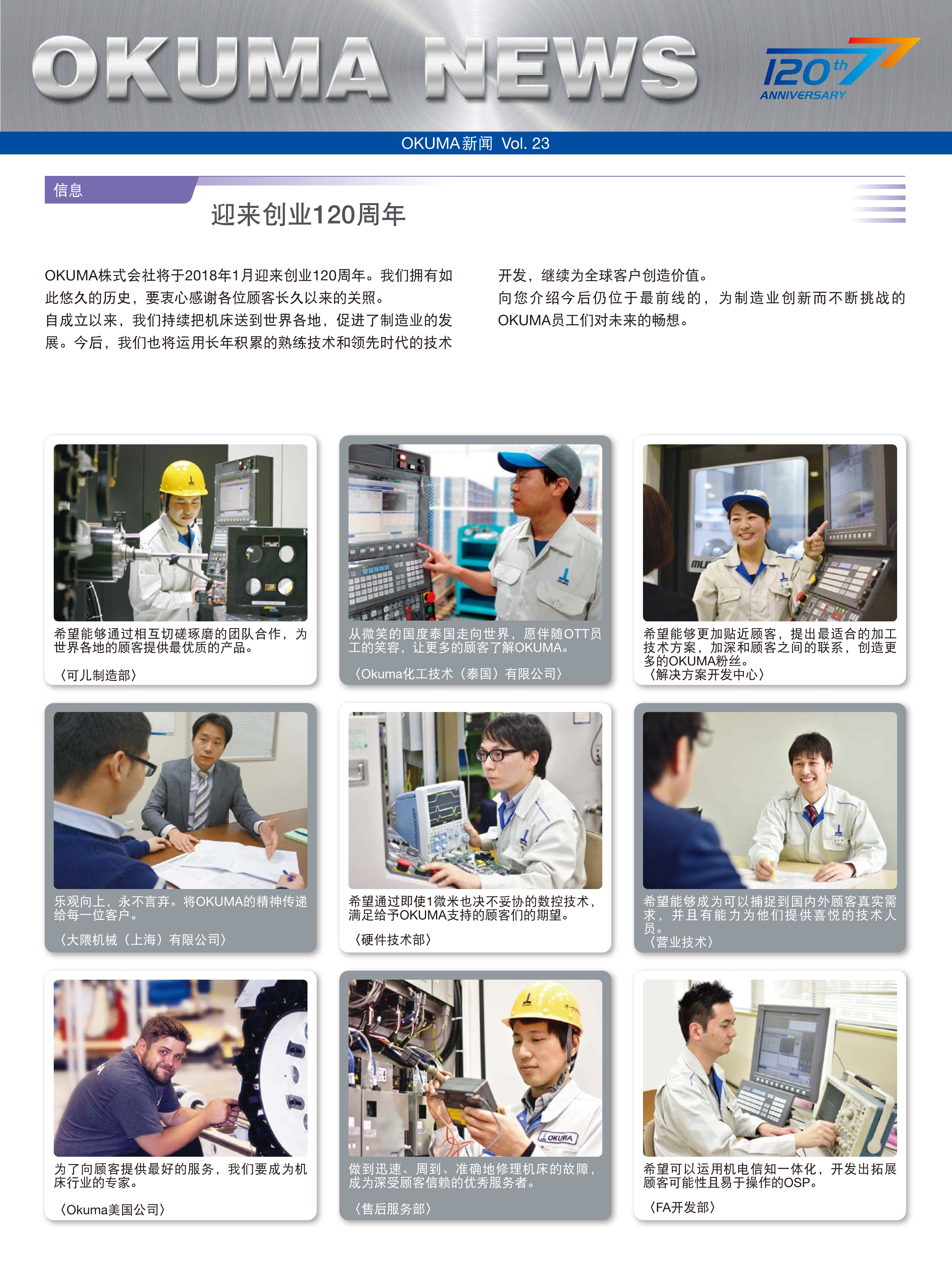 OKUMA新闻 Vol. 23--OKUMA迎来创业120周年