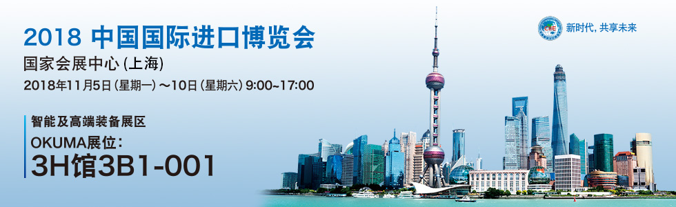 CIIE 2018 首届中国国际进口博览会上,OKUMA将携五轴立式加工中心及车铣复合加工机等,凝聚OKUMA最新技术的5台机床进行参展。