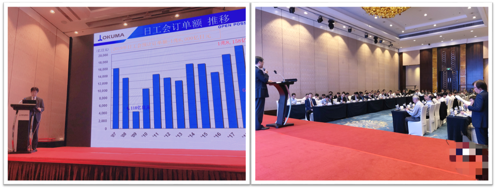 由OKUMA日本总社的常务石丸先生进行了开会宣言,发言中石丸常务对OKUMA中国上半年的情况进行了总结,主要提到了为更好地对应和服务华北地区,扩大北部区域销售三月份在山东济南新成立的「济南技术中心」,以及预计下半年即将在江苏常州成立的新工厂「大隈(常州)机床有限公司」,常州工厂落成后,将主要从事设备生产,对应中国市场现地生产设备的需求,进一步缩短纳期,加强工程设计能力,为客户提供更畅销的产品。