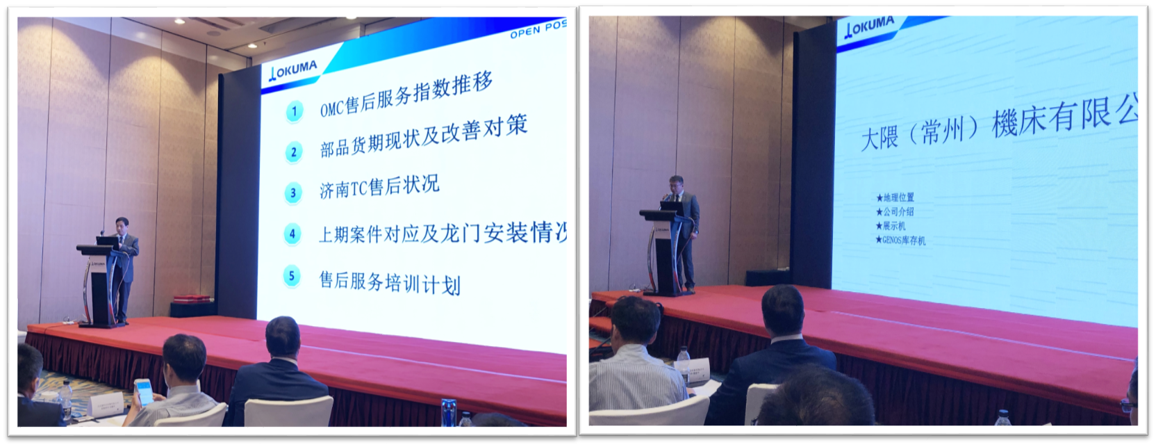 随后,OKUMA日本总社东亚洲营业部部长莲池徹先生,OKUMA日本董事兼任OKMUA上海董事长的旭泰博先生,OKUMA上海营业部、技术部、维修部部长,以及OKUMA常州、北一大隈(北京)、大同大隈(台湾)的与会代表就各地方、各部门状况和未来方针目标进行了发表和阐述。借此机会,技术部还对个别机型进行了进一步的技术说明,加深各代理店对于OKUMA设备优势的认知和理解。