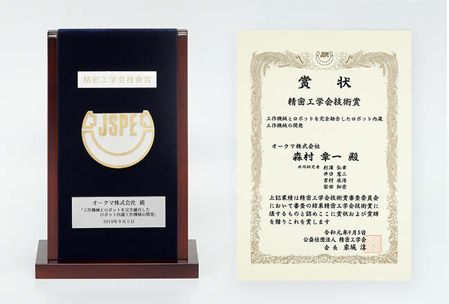 关于新一代机器人系统ARMROID,开发了“完全融合机床与机器人的机器人内置型机床”的我公司员工,荣获2019年(第39届)精密工学会技术奖。