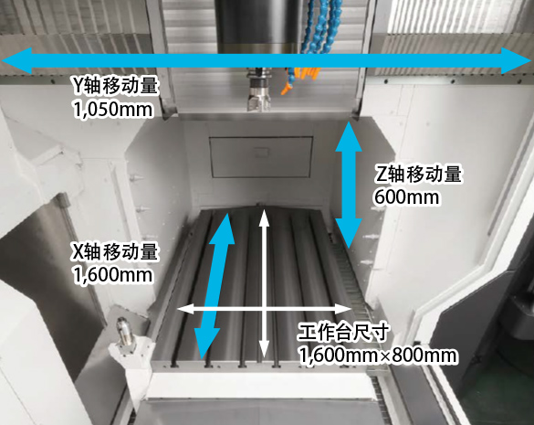 | 移动量 | X轴(工作台左右) | mm | 1,600 | |
