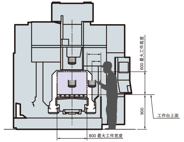 对应中/大型零件加工或大型塑料模具的800mm的工作台,